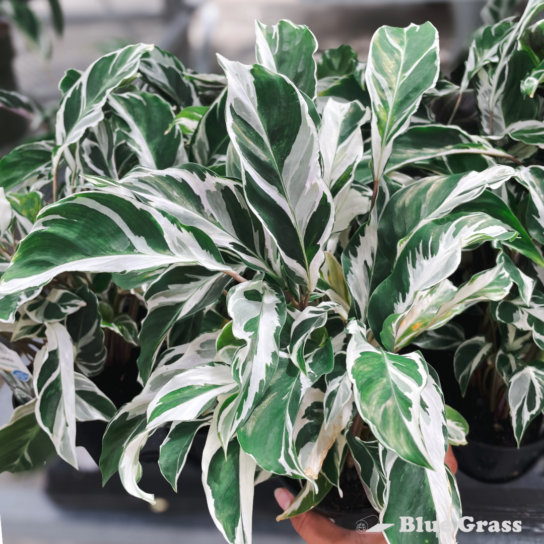 The Marantaceae family is known for its stunning foliage, and Calathea lietzei ‘White Fusion’ is no exception. Its elegant, slender leaves feature striking green and white variegation, with hints of pink or purple on the undersides. Also known as the Priory Plant, its leaves gently fold at night and reopen by day.