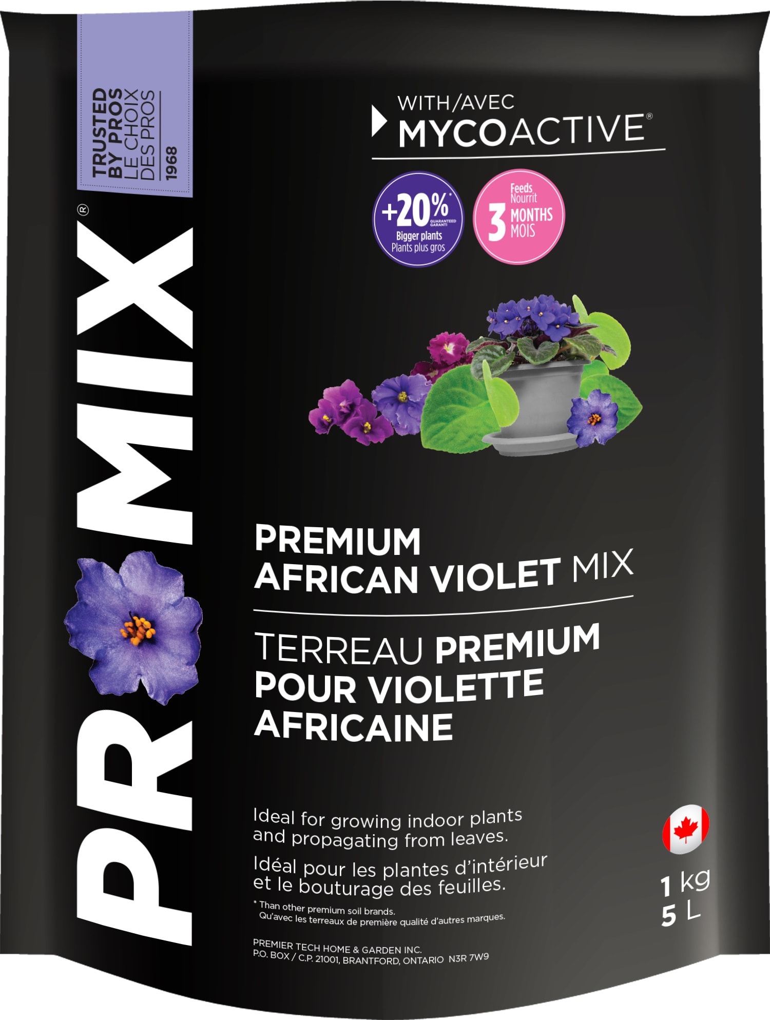 PRO-MIX African Violet Mix provides improved air porosity and water retention, ideal for these delicate plants. This mix is also suitable for all plants from the Gesneriad family such as Streptocarpus, Episcias and Gloxinias. It offers optimial conditions for growing beautiful indoor plants.